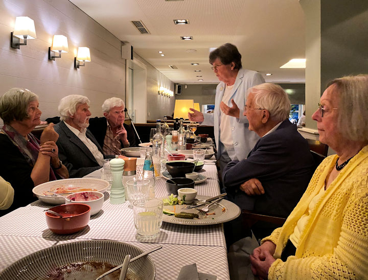 In den vergangenen Jahren trafen wir uns in einen getrennten Raum, der in diesem Jahr bereits vergeben war. Also saßen wir ein wenig gedrängt an einem langen Tisch, was dem Kontakt und den Gesprächen zu gute kam. Selten habe ich ein so animiertes Klassentreffen erlebt.