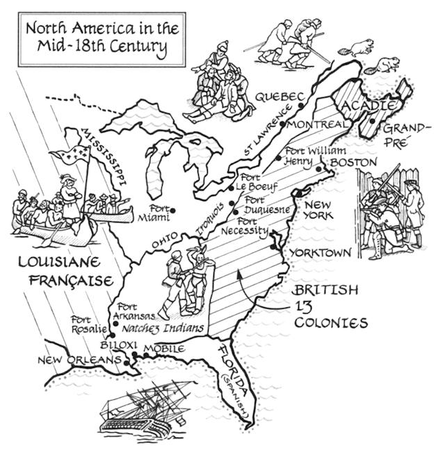 Nordamerika Mitte des 18. Jahrhunderts vor dem Siebenjährigen Krieg [Clar10] |